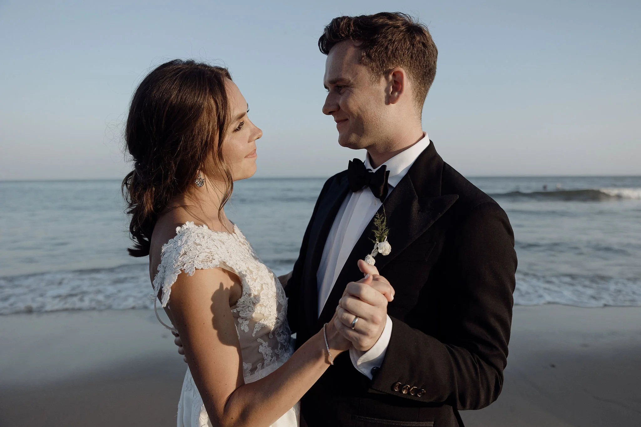 As the sun set, they snuck away for golden-hour beach photos, soaking in a quiet moment together before returning to an unforgettable night of celebration.